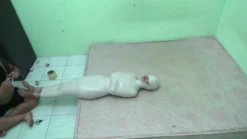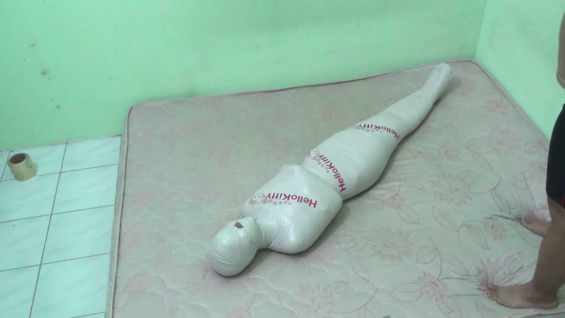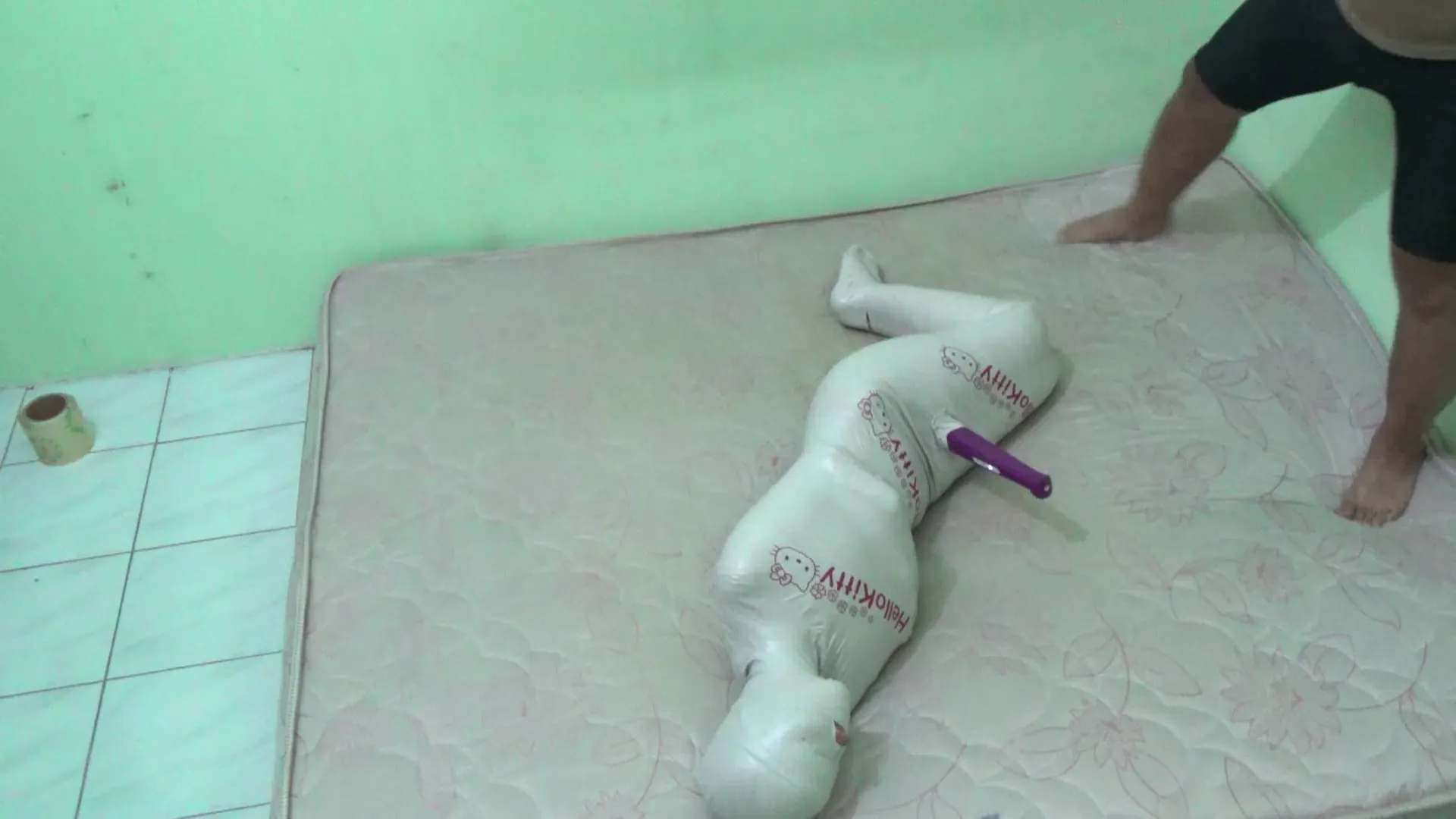 Beautiful Girl Mummified In Room Until Helpless Then Her Body Decorated With Hello Kitty Stickers Then Stimulated With Vibrator Until This Girl Struggles.